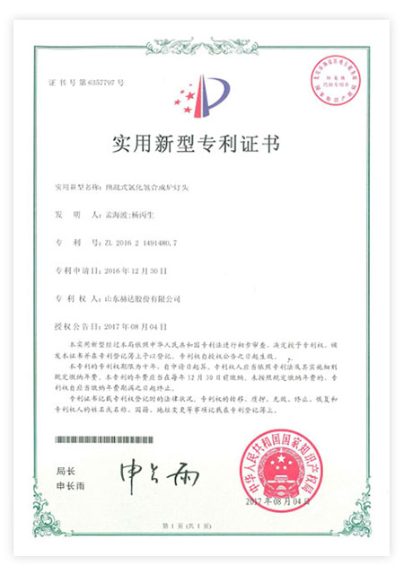 Head has 113 patents, including 23 invention patents and 90 utility model patents. "Machine granulation uniformity device" won the achievements of China's scientific and technological innovation. It has been awarded "High-tech Enterprise", "China Patent Shandong Star Enterprise", "China Science and Technology Innovation Invention Achievement", "Shandong Enterprise Innovation Award", "Zibo City Major Science and Technology Achievement", "Zibo City Science and Technology Achievement", "Most Influential Brand in Ready-Mixed Mortar Industry", "Best R&D Team", "Excellent Enterprise", "Excellent Technological Innovation Team" in Zhoucun District and other honorary titles by the relevant state departments for many times. In 2021, It was rated as a specialized, special, and new little giant enterprise, and was selected as the 26th among the "Top 100 Industrial Enterprises in Zibo City".