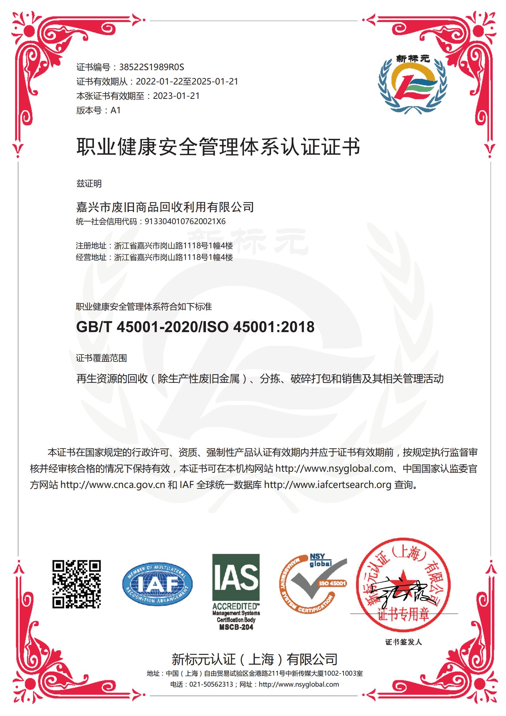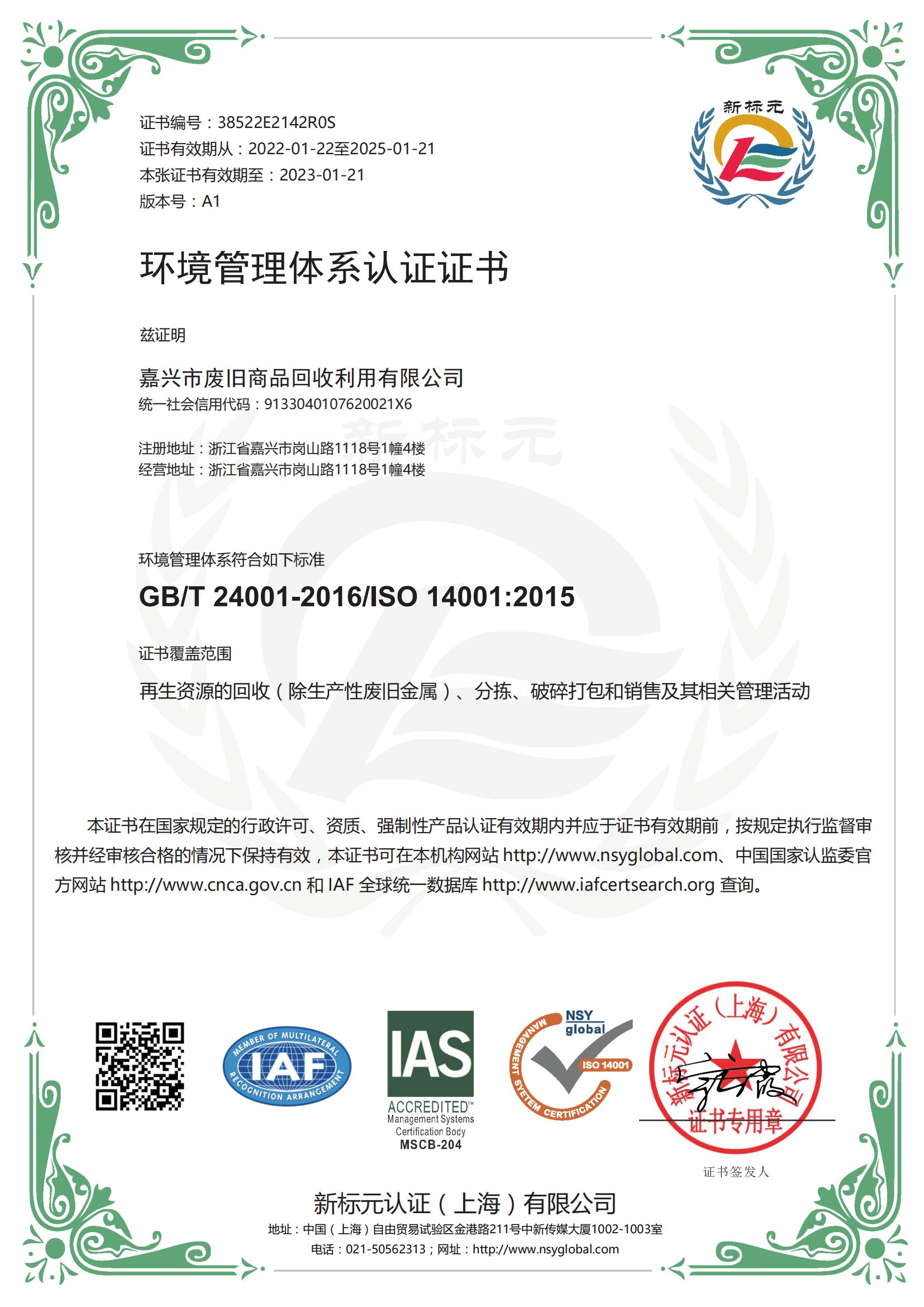 公司名稱:嘉興市廢舊商品回收利用有限公司(秀洲)